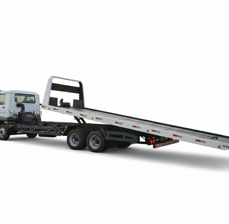 A PRANCHA OPERACIONAL MEC, que se enquadra na categoria de "Mecanismo Operacional", é um implemento veicular fixo projetado para o transporte especializado de cargas indivisíveis, como veículos avariados, máquinas agrícolas (tratores, colheitadeiras) e equipamentos pesados. Sua principal função é facilitar o carregamento, transporte e descarregamento desses itens com máxima segurança e eficiência.